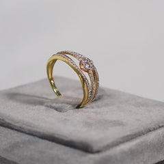 Multi band structure in yellow gold with radiant crystal cluster ring